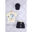 Babyhola 3'lü Tişört Keten Şort Şapka Erkek Bebek Çocuk Bayramlık Alt Üst Takım Elbise 02111 001