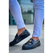 Bağcıksız Kömür Rugan H Günlük Erkek Ayakkabısı Siyah2 Siyah