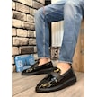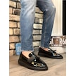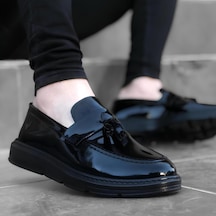 Bağcıksız Yüksek Taban Parlak Siyah Mat Detaylı Klasik Ayakkabı
