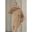 Tesettür İkili Takım Uzun Tunik Bol Paça Pantolon 4006-bej Bej