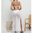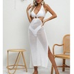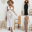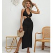 Bağlama İpli Derin V Yaka Örgü Boyundan Bağlamalı Tunik Uzun Plaj Elbisesi Siyah