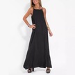 Bahar Ve Yaz Kadın Modası Rahat Pamuklu Yarık Askılı Elbise Siyah