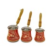 Bakır Cezve Özel İşlemeli Kırmızı 3'lü Set