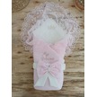Bal Peteği My Princess Taç Nakış İnci Fiyonklu Dantel Duvaklı Delüks Kundak Bebek Battaniyesi Pembe Pembe