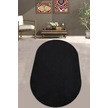 Balat Halı Elips Yumuşak Kaymaz Taban Siyah Peluş Halı Yolluk