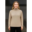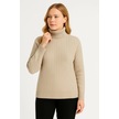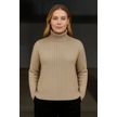 Balıkcı Yaka Bağazlı Triko Kazak Pamuklu Kalın Fitilli Dokuma - Bej Bej