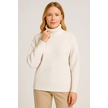 Balıkcı Yaka Bağazlı Triko Kazak Pamuklu Kalın Fitilli Dokuma - Beyaz Beyaz
