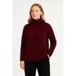 Balıkcı Yaka Bağazlı Triko Kazak Pamuklu Kalın Fitilli Dokuma - Bordo Bordo
