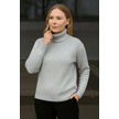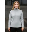 Balıkcı Yaka Bağazlı Triko Kazak Pamuklu Kalın Fitilli Dokuma - Gri Gri