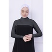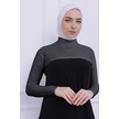 Balıkçı Yaka Boyunluklu Kolluk Gri - Likralı Dik Yakalı Kadın Body Tesettür Crop Bolero Gri