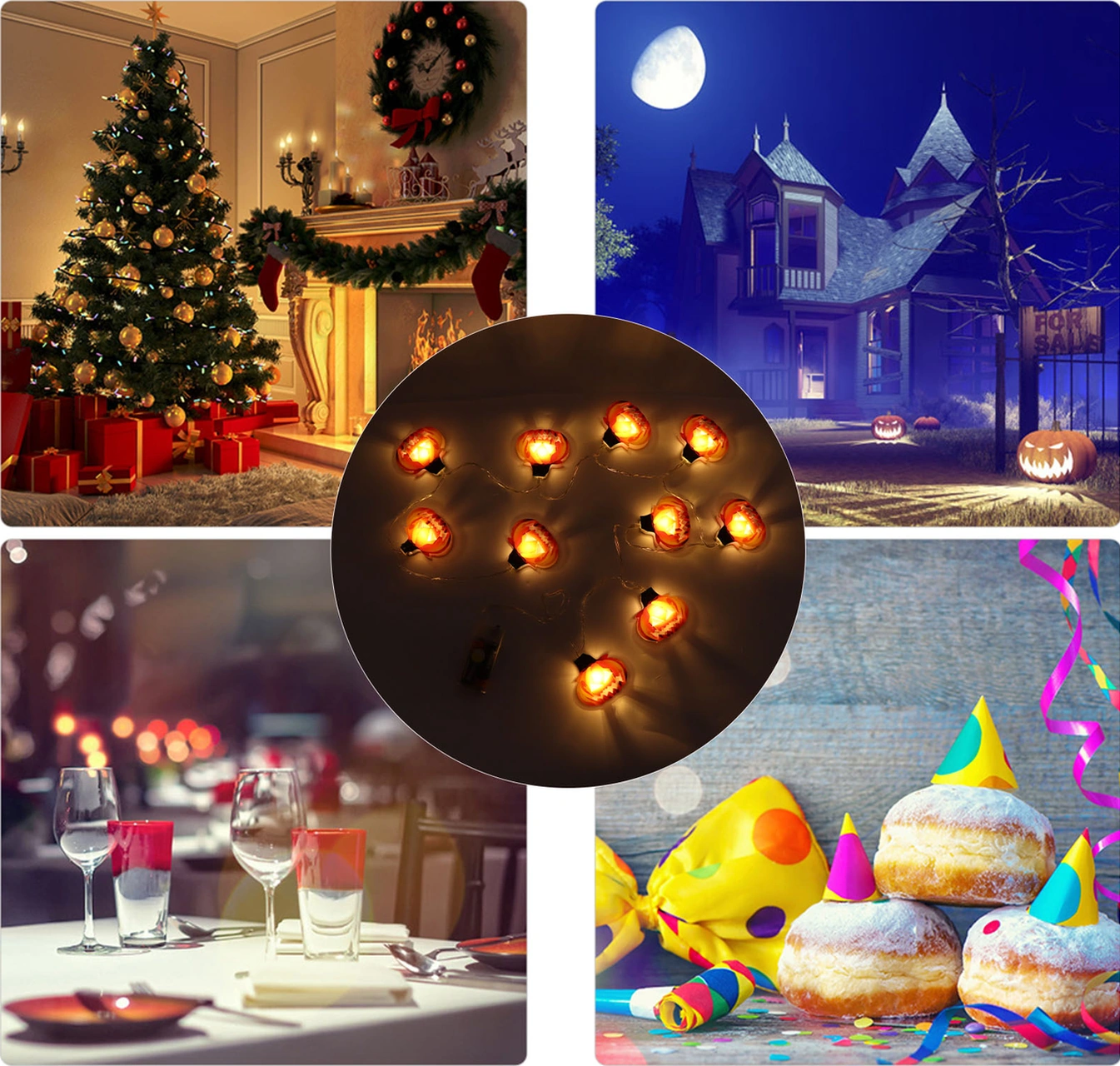 Balkabağı Fenerleri: 10 Led Pil İle Çalışan Cadılar Bayramı Dekoratif Lamba Aksesuarları Diğer