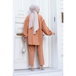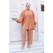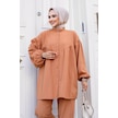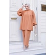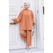 Tesettür İkili Takım Uzun Tunik Bol Paça Pantolon 4006-kahve Kahverengi