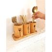 Bambu Altlıklı 3'lü Çatal Kaşık Bıçak Düzenleyici Set 4 Parça Bambu