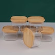 Bambu Kapaklı Cam Kahvaltılık 6 Adet Vakum Kapaklı Hava Almaz Borosilkat Cam
