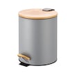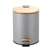 Bambu Kapaklı Pedallı Metal Çöp Kovası - 5 Lt. - Gri Gri