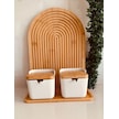 Bambu Kapaklı Porselen Kaşıklı 2'li Bambu Standlı Tuzluk Biberlik Ahşap - Beyaz
