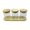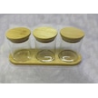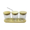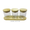 Bambu Standlı 3 Lü Mini Baharatlık Seti Vakum Kapaklı Kavanoz 7x6 Cm Stand 22x7 Cm Şeffaf