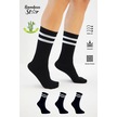 Bambu Tenis Çizgili Premium Kolej Çorabı Unisex Siyah Dikişsiz Soket Çorap 3'lü Paket Çok Renkli