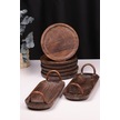 Bambum 8 Parça Pavlonya Obsidian Ahşap Sunum Seti Yuvarlak Ve Dikdörtgen Ayaklı Servis Tabaklar Ahşap