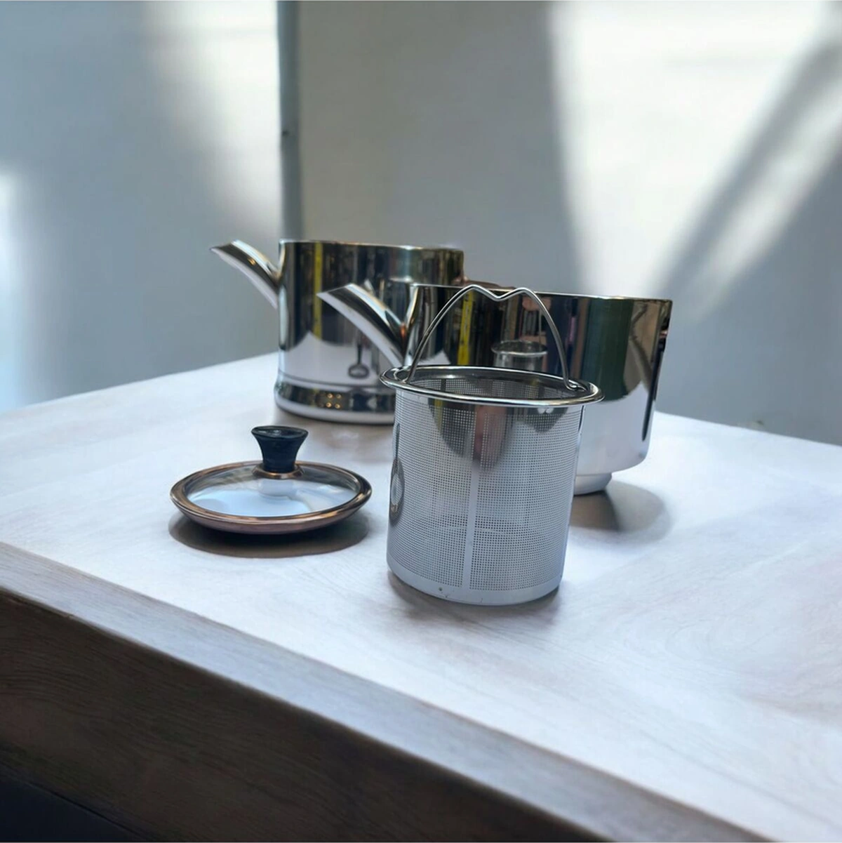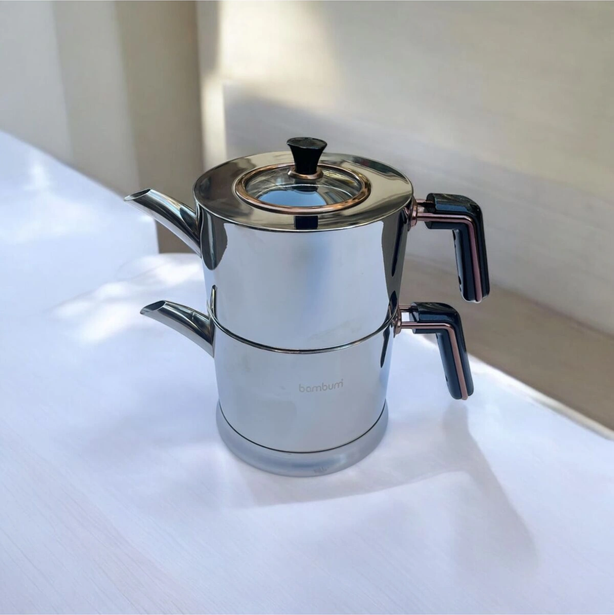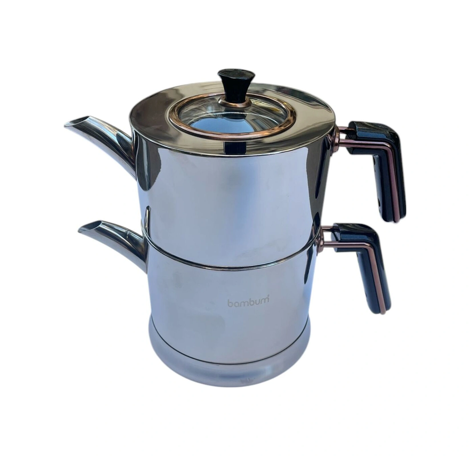 Bambum Fita Süzgeçli Aile Boy Çelik Çaydanlık Takımı Siyah Siyah