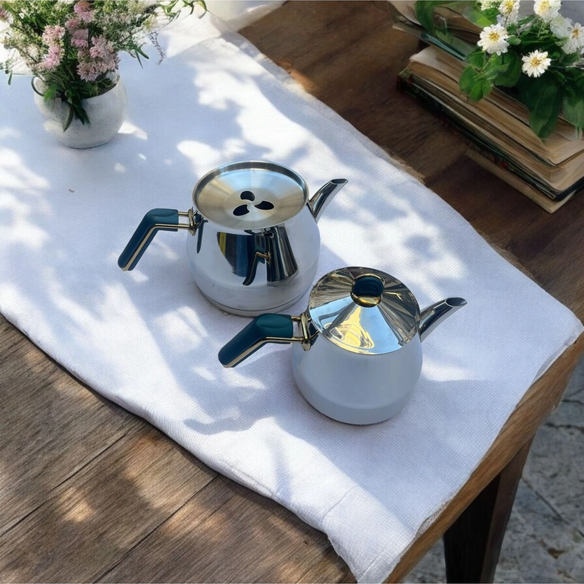 Bambum Lunar Orta Boy Çelik Çaydanlık Takımı Yeşil Yeşil