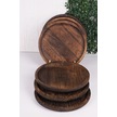 Bambum Patrin Doğal Ahşap Yuvarlak Küçük Tabak 6 Lı Set 25x2 Cm Kahverengi