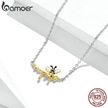 Bamoer 925 Ayar Gümüş Canlı Bumblebee Ve Tatlı Bal Kolye Parlak Emaye Kaplama Altın Zincir Kolye Kadınlar İçin Moda Takı Altın