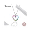 Bamoer 925 Ayar Gümüş Gökkuşağı Renkli Kalp Desen Aşk Göz Kamaştırıcı Zirkon Kolye Zincir Bağlantı Kadınlar Takı İçin