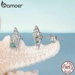 Bamoer 925 Ayar Gümüş Kabuklu Saplama Küpe Kakma Yeşil Zirkonya Hipoalerjenik Küpe Kadınlar İçin Okyanus Serisi Takı