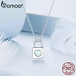Bamoer 925 Ayar Gümüş Kalp Kilit Kolye Kolye Beyaz Kabuk Aşk Boyun Zinciri Kadınlar İçin Sevgililer Günü Güzel Takı Hediye Beyaz