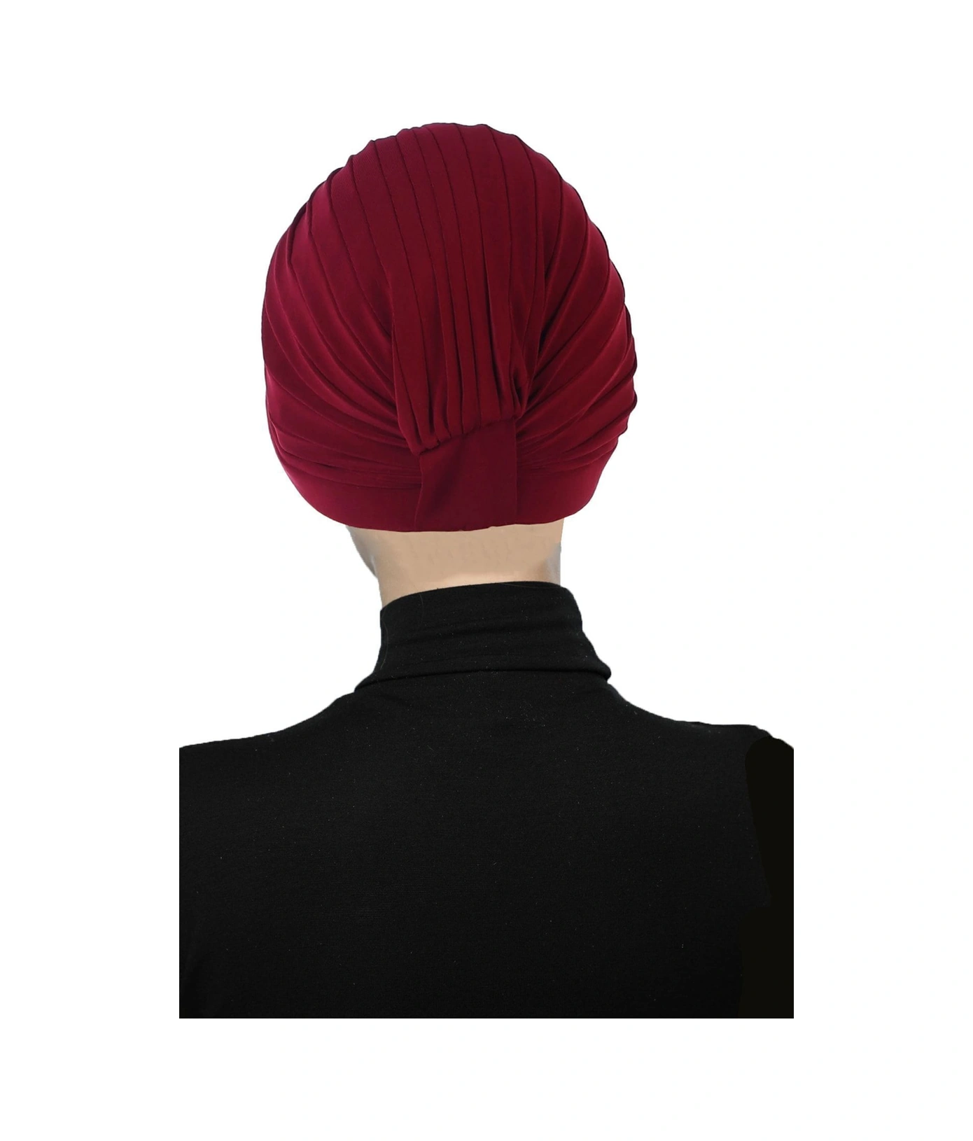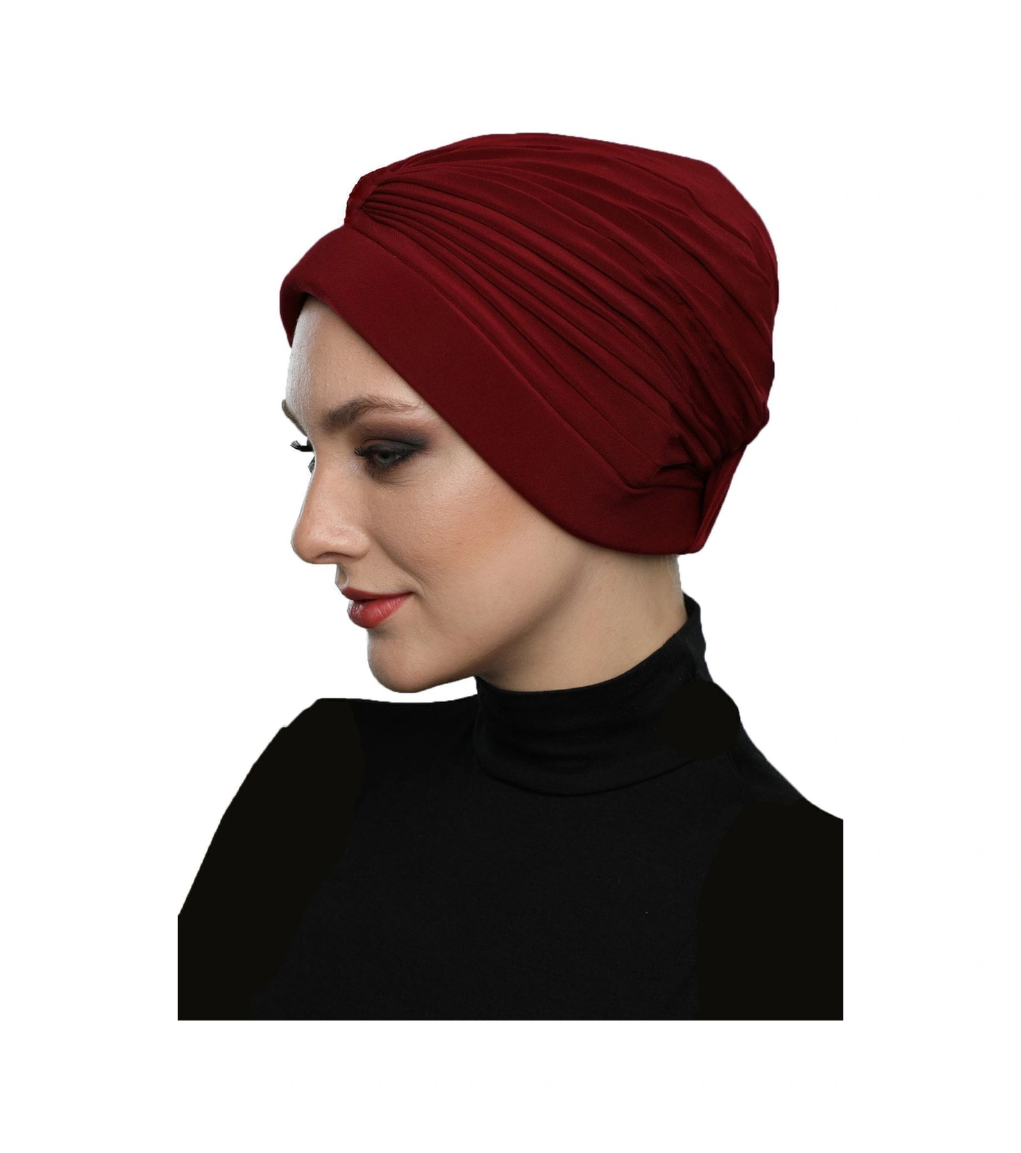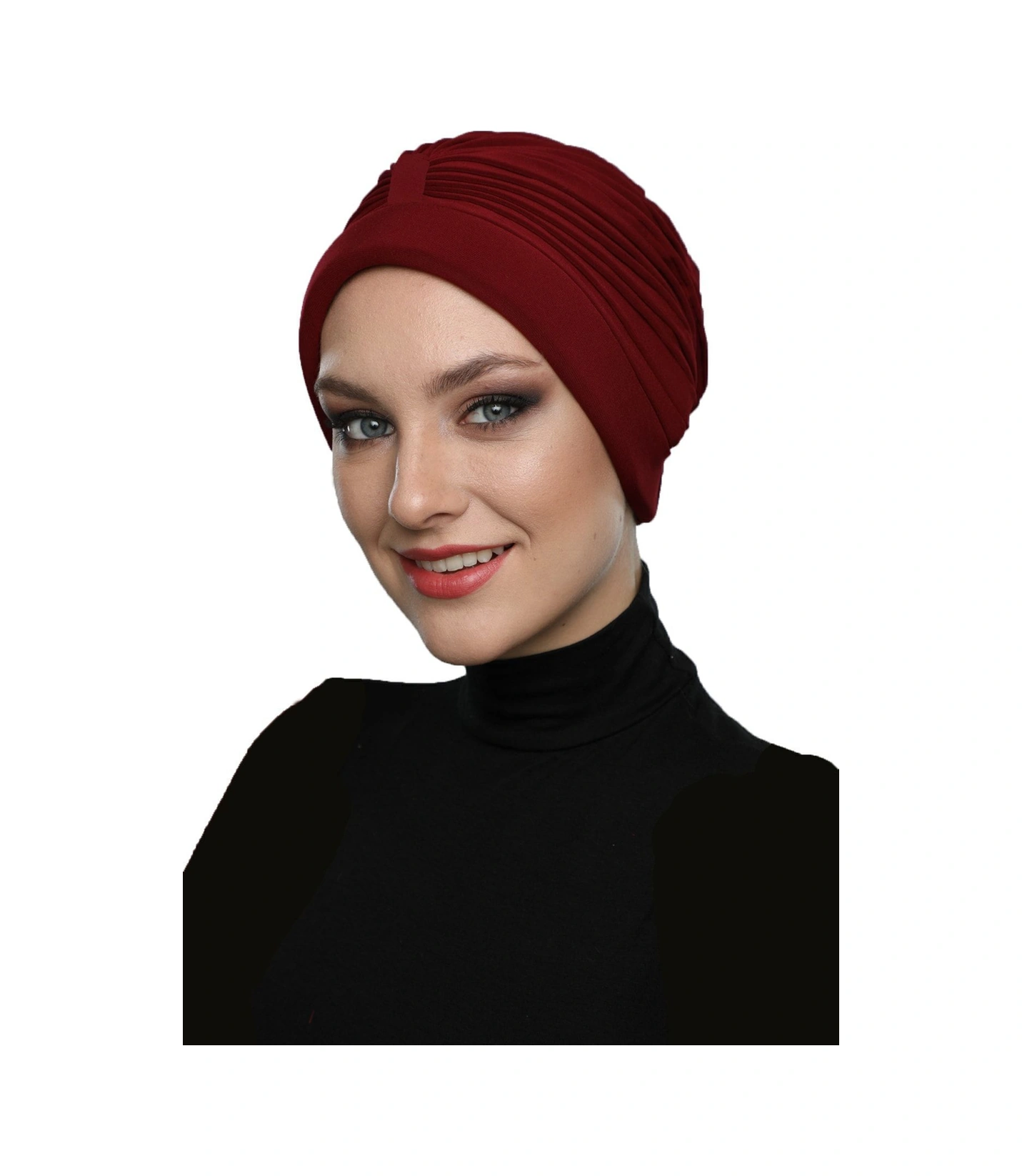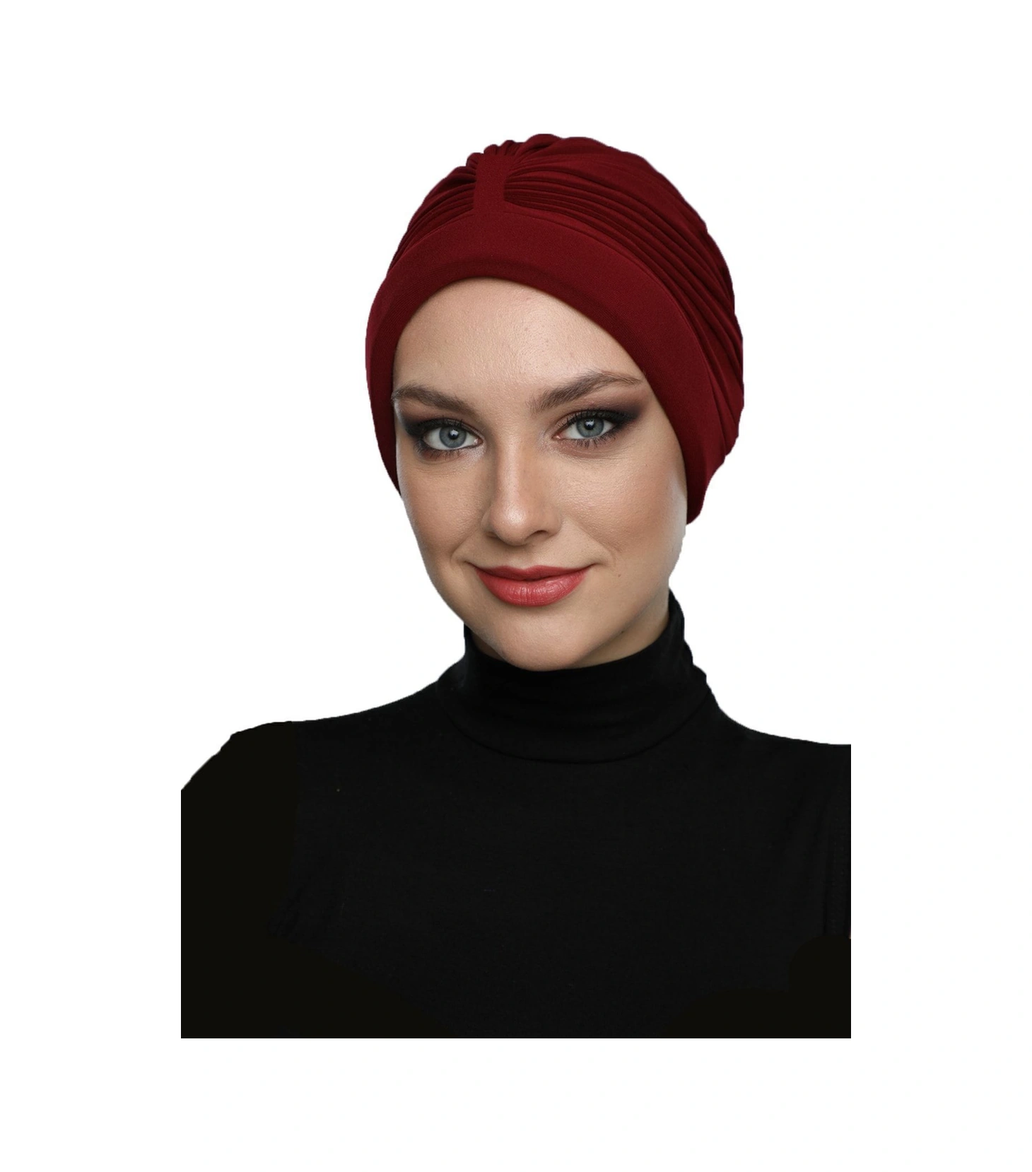 Bantlı Ön Ve Ensesi Bantlı Nervürlü Bordo Süngerli Hazır Türban Tesettür Bone Havuz Bonesi Bordo