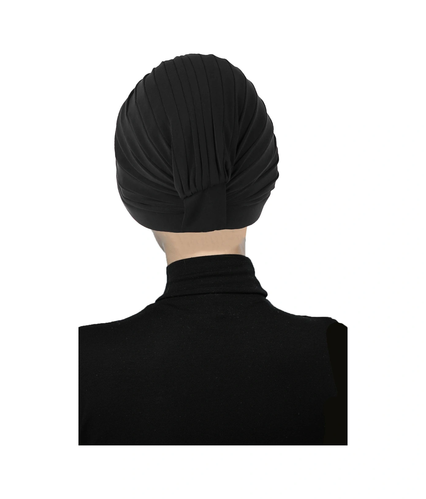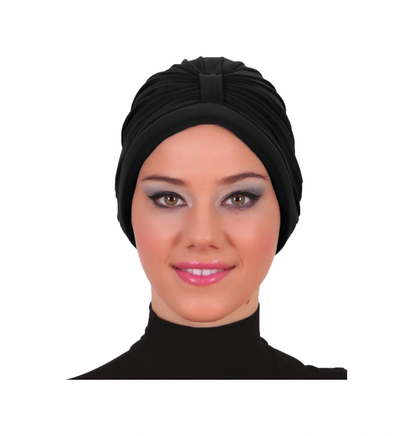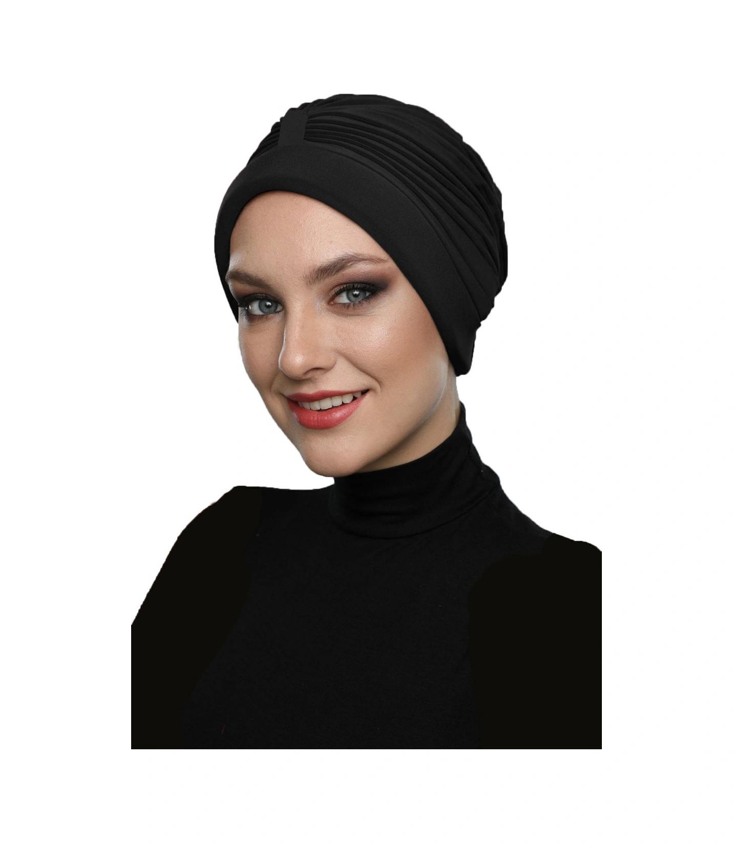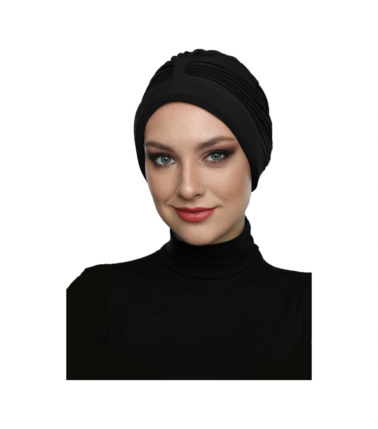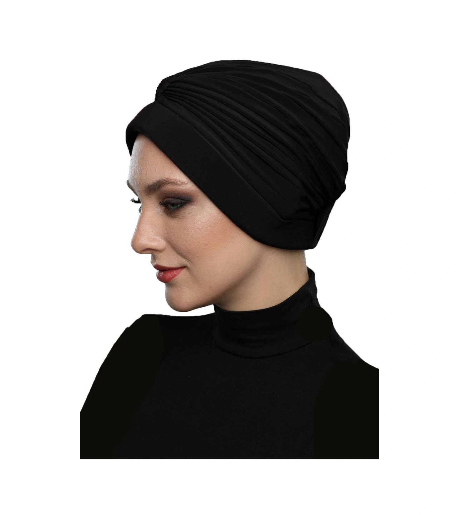 Bantlı Ön Ve Ensesi Bantlı Nervürlü Siyah Süngerli Hazır Türban Tesettür Bone Havuz Bonesi Siyah
