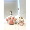 Banyo Sabunluk Seramik Kedi Paw Losyon Dispenseri Basın Tipi El Bej - Sarı