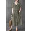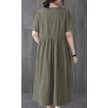 Barbora Keten Günlük Rahat V Yaka Beli Büzgü Detaylı Düğmeli Elbise Ln04haki3 001