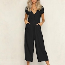 Barbora Keten Günlük Yazlık V Yaka Kısa Paça Tasarım Kadın Tulum Ln1010siyah5 001