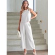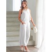 Barbora Keten Yazlık Yüksel Bel Capri Pantolon Sırt Detaylı Kolsuz İkili Takım Ln26ekru1 001