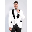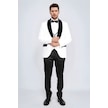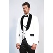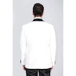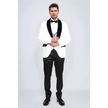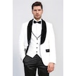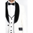 Barok Desenli Kadife Şal Yaka Yelekli Beyaz Smokin - Wessi Beyaz