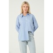 Basic Oversize Çizgili Gömlek Buz Mavisi