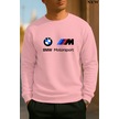 Baskılı Bisiklet Yaka Sweatshirt Pembe