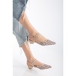 Baskılı Cilt Arka Açık Bej Kadın Kısa Topuklu Ayakkbı-2697-bej Bej