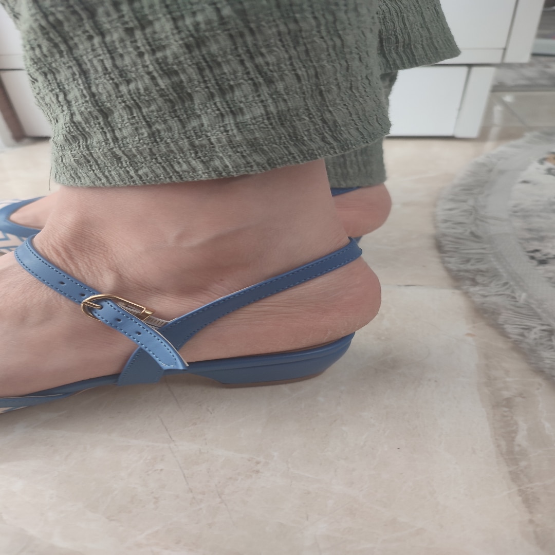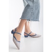 Baskılı Cilt Arka Açık Mavi Kadın Kısa Topuklu Ayakkbı-2696-mavi Mavi