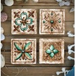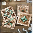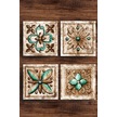Doğal Taş Bardak Altlığı Çiçek Desenleri Baskılı 4'lü Set - Stone Coasters Çok Renkli