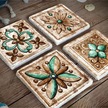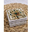 Baskılı Doğaltaş Bardak Altlığı 4'lü Set - Hint Desenli Doğal Taş Bardak Altı Çok Renkli
