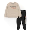Baskılı Fırçalı Kumaş Uzun Kollu Erkek Çocuk Eşofman Takımı Bej
