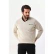 Baskılı V Yaka Uzun Kol Dokuma Triko - Bej Bej