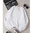 Baskısız Düz Sweatshirt - Beyaz Kalın Kışlık Şardonlu Uzun Kol Oversize Bisiklet Yaka Beyaz