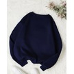 Baskısız Düz Sweatshirt - Lacivert Kalın Kışlık Şardonlu Uzun Kol Oversize Bisiklet Yaka Lacivert
