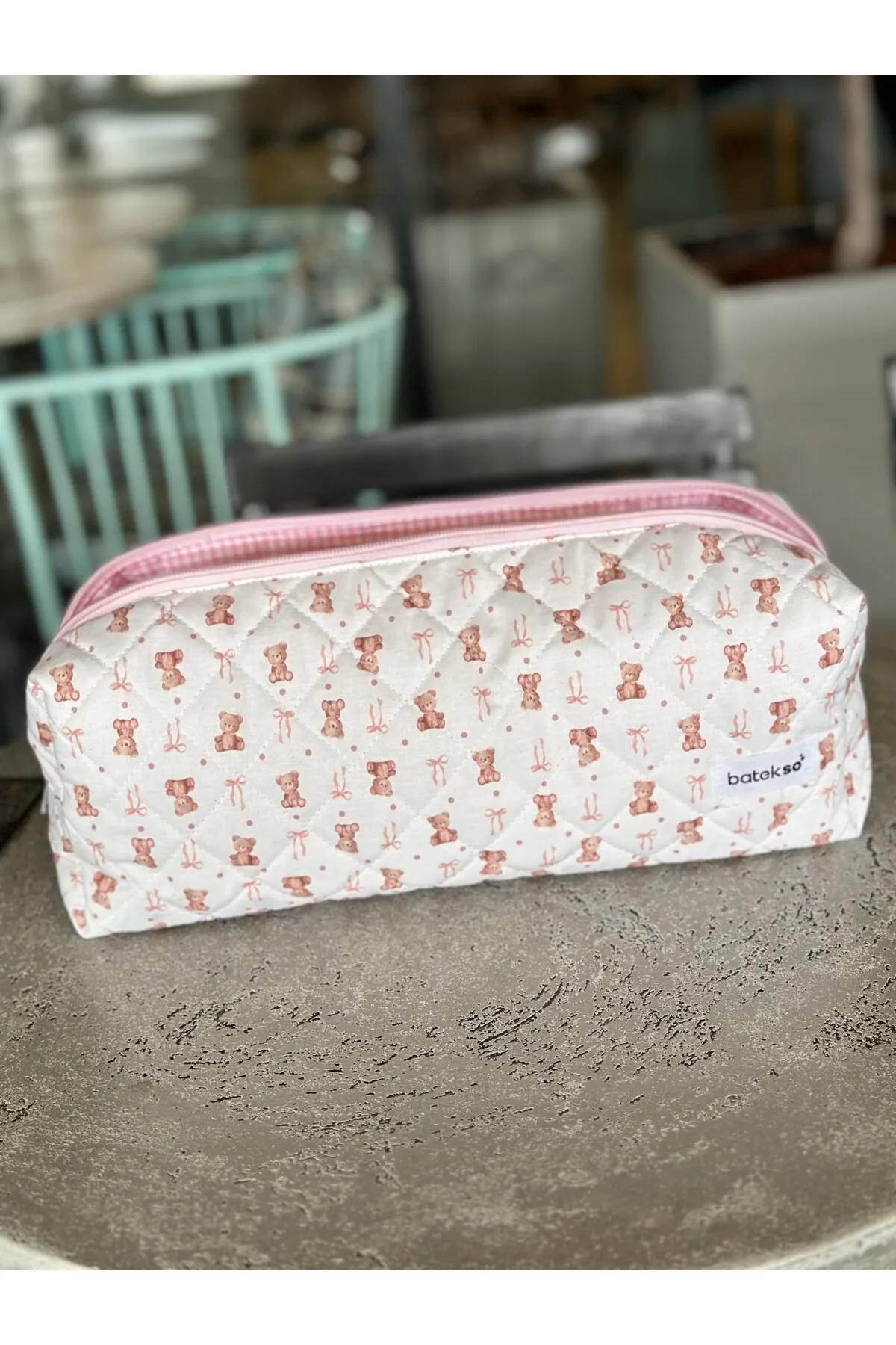 Batekso Pembe Ayıcık Desenli Saç Şekillendiricileri İçin Seyahat Çantası - Xl Boy Açık Pembe