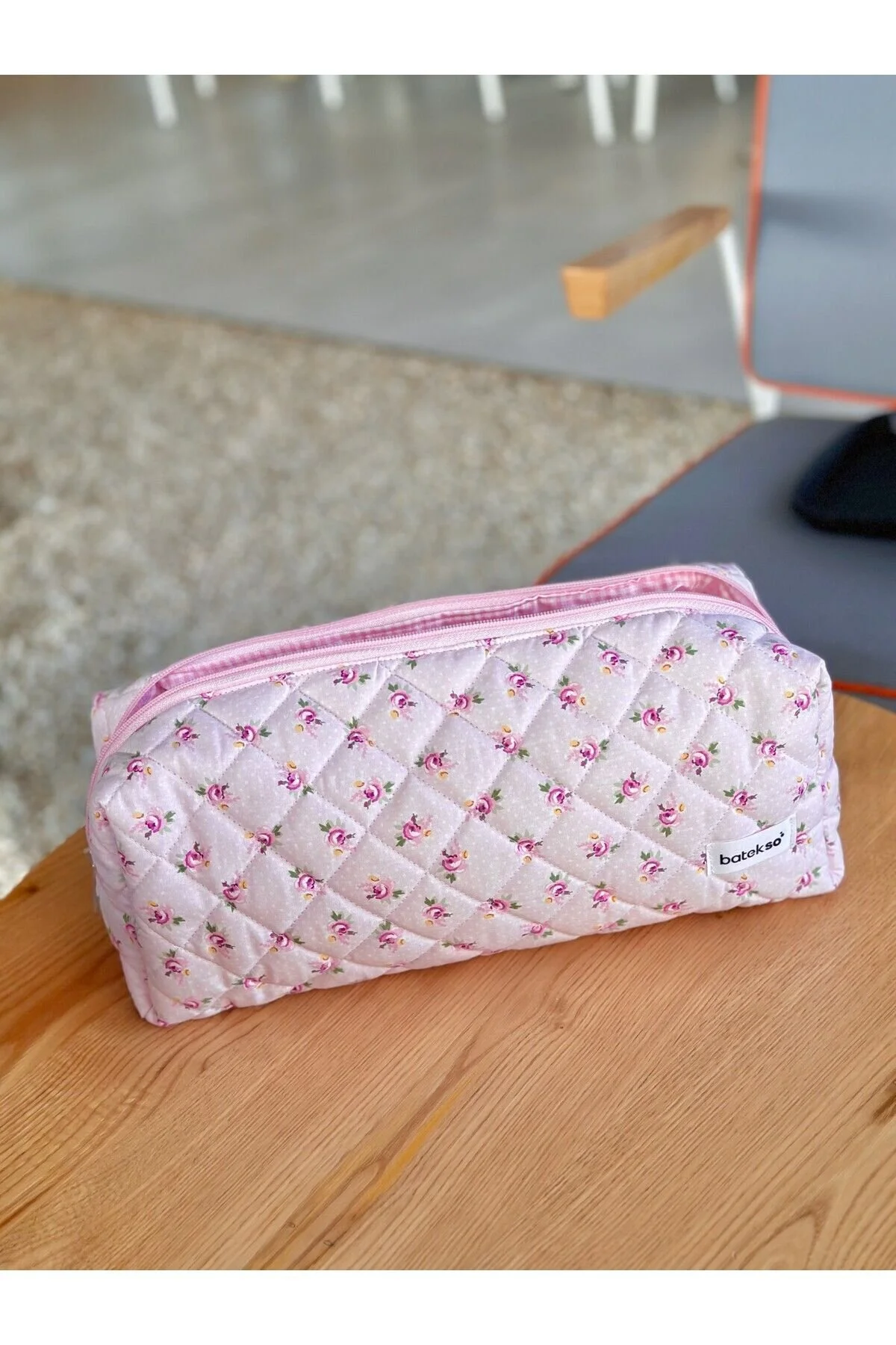 Batekso Toz Pembe Gül Desenli Saç Şekillendiricileri İçin Seyahat Çantası - Xl Boy Toz Pembe