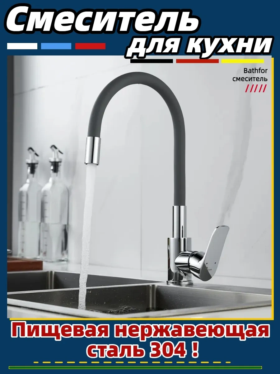 Bathfor Esnek Uçlu Mutfak Musluğu 196533276 Gri